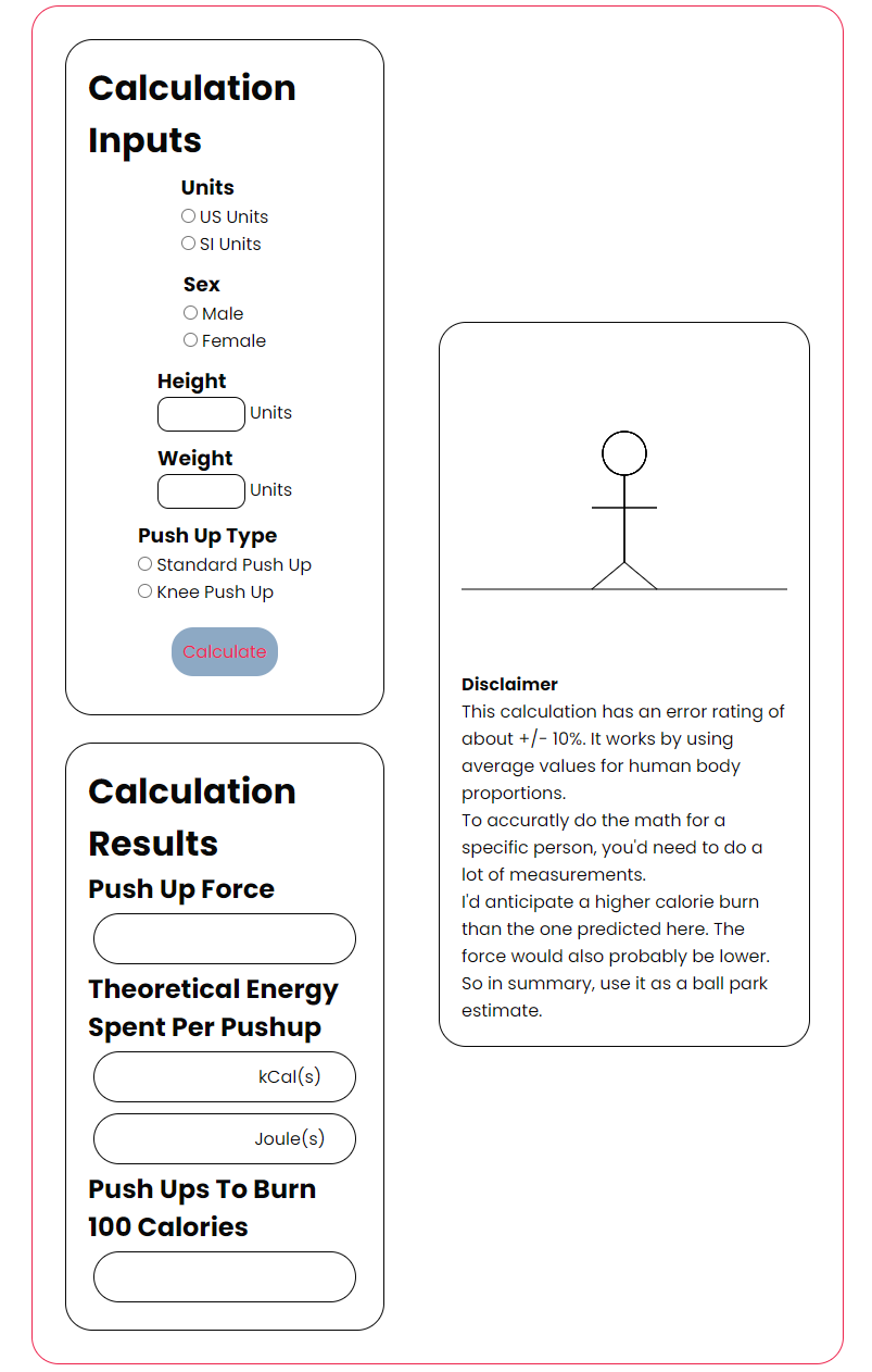 I was curious how much weight I'm "bench pressing" when doing pushups. This is what came from that. It uses averages, so it won't be exactly correct, but it should be close. Probably.